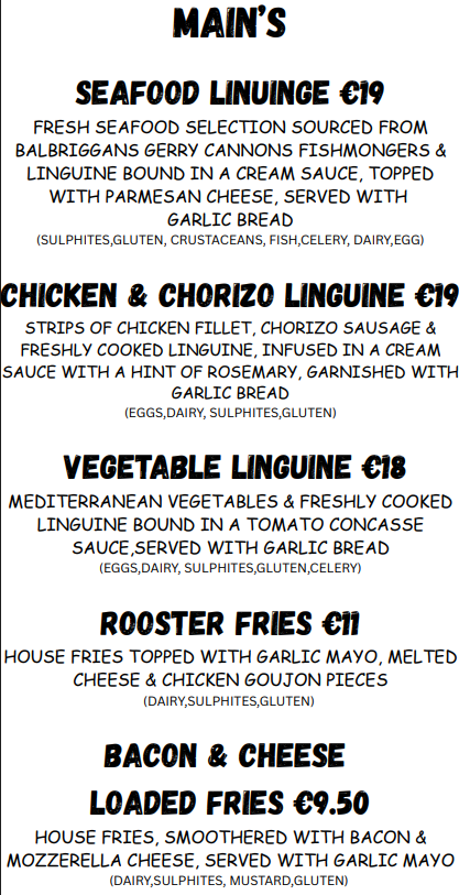 Restaurant and Bar Menu